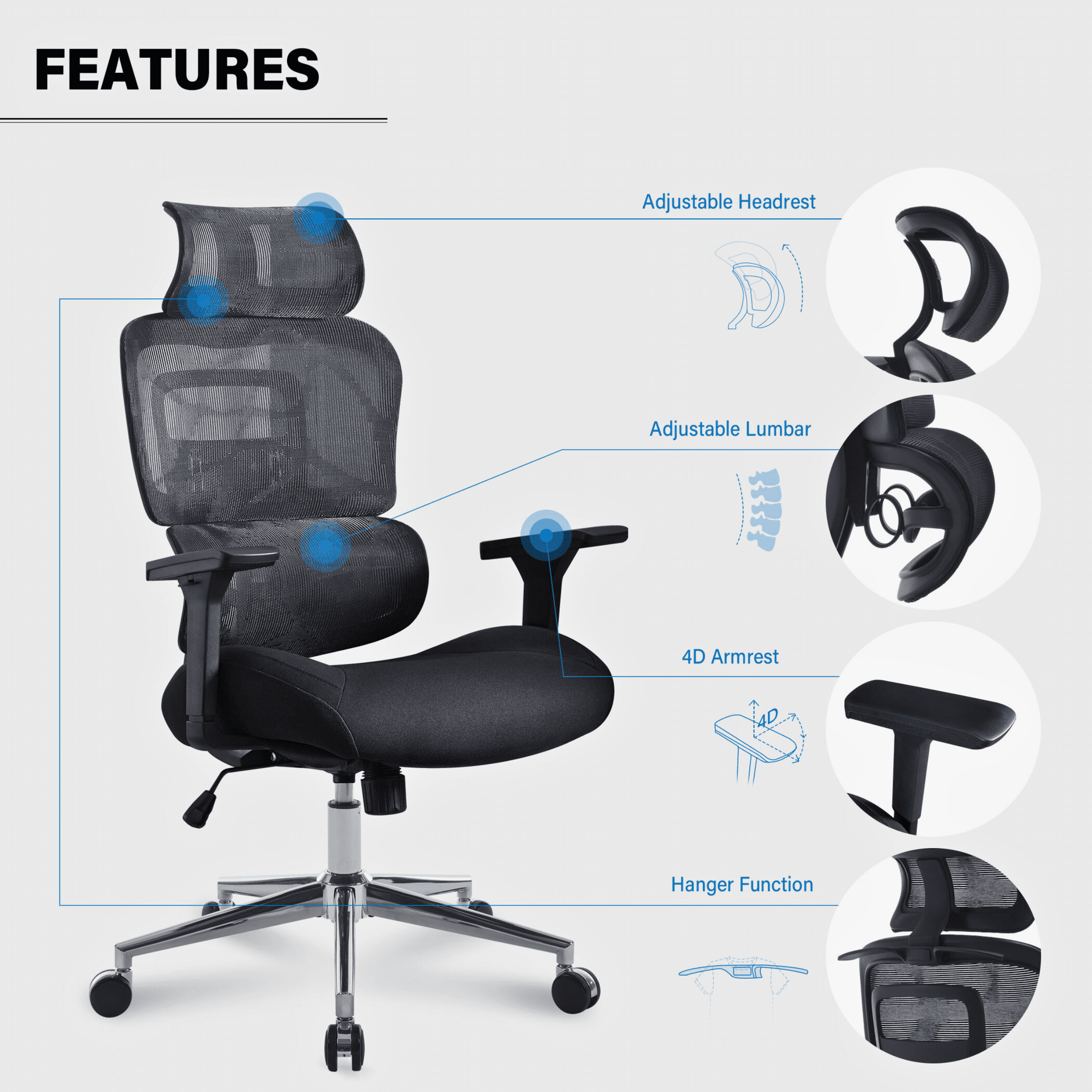 Designed with a durable concept, this office cai fits the body perfectly. The headrest and 3D lumbar support meet the needs of the individual. The dynamic head support feature as well as the independent lumbar support allow the body to feel the lumbar support and curvature of the computer chair, providing increased comfort while balancing pressure.