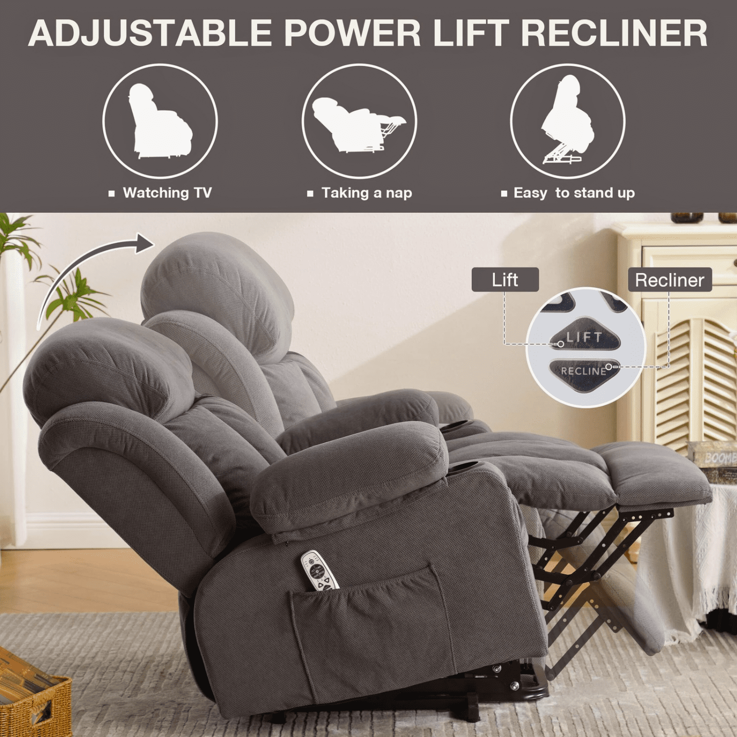 The power lift recliner chair features a sleek design that complements any space, making it suitable for the living room or bedroom and promising to enhance your quality of life.