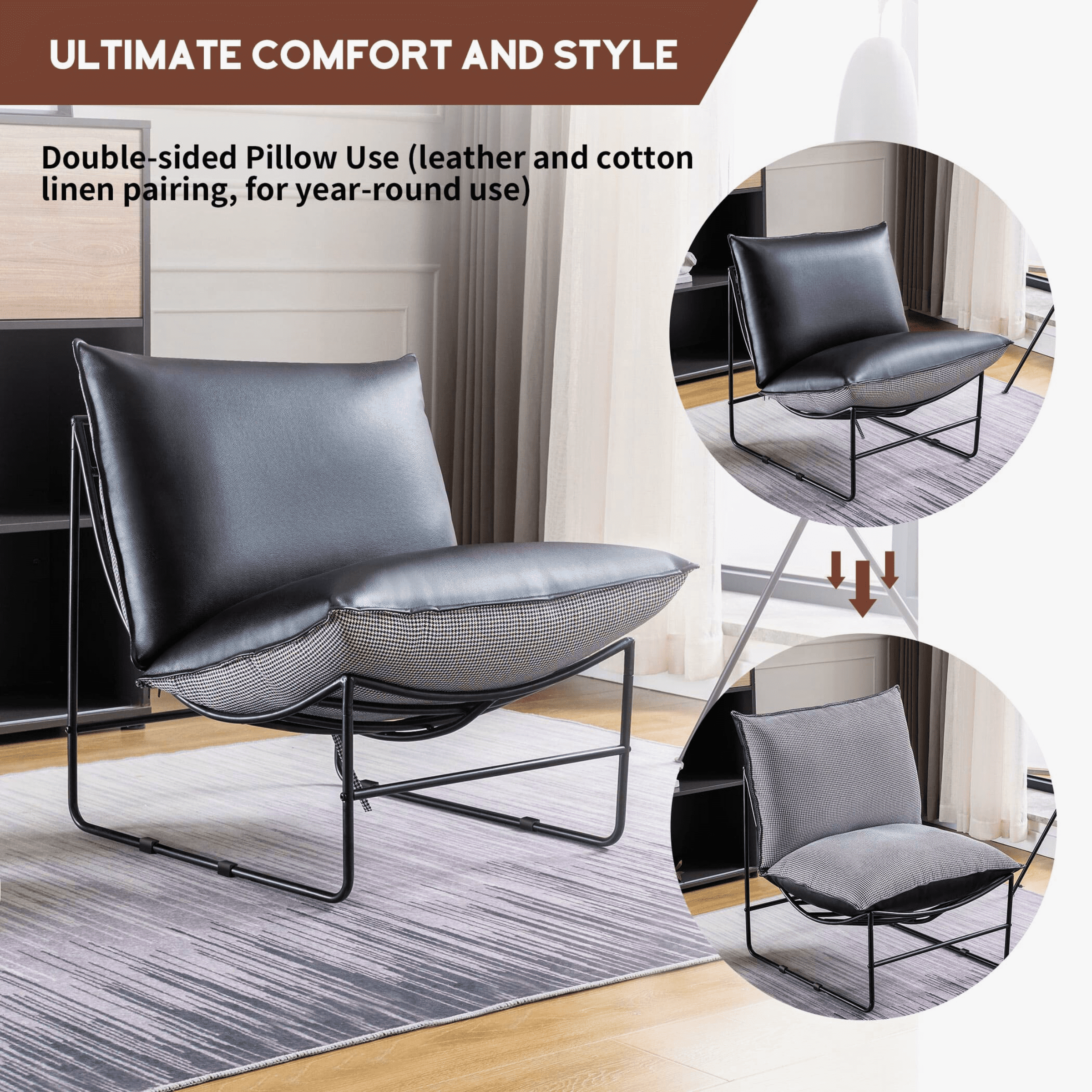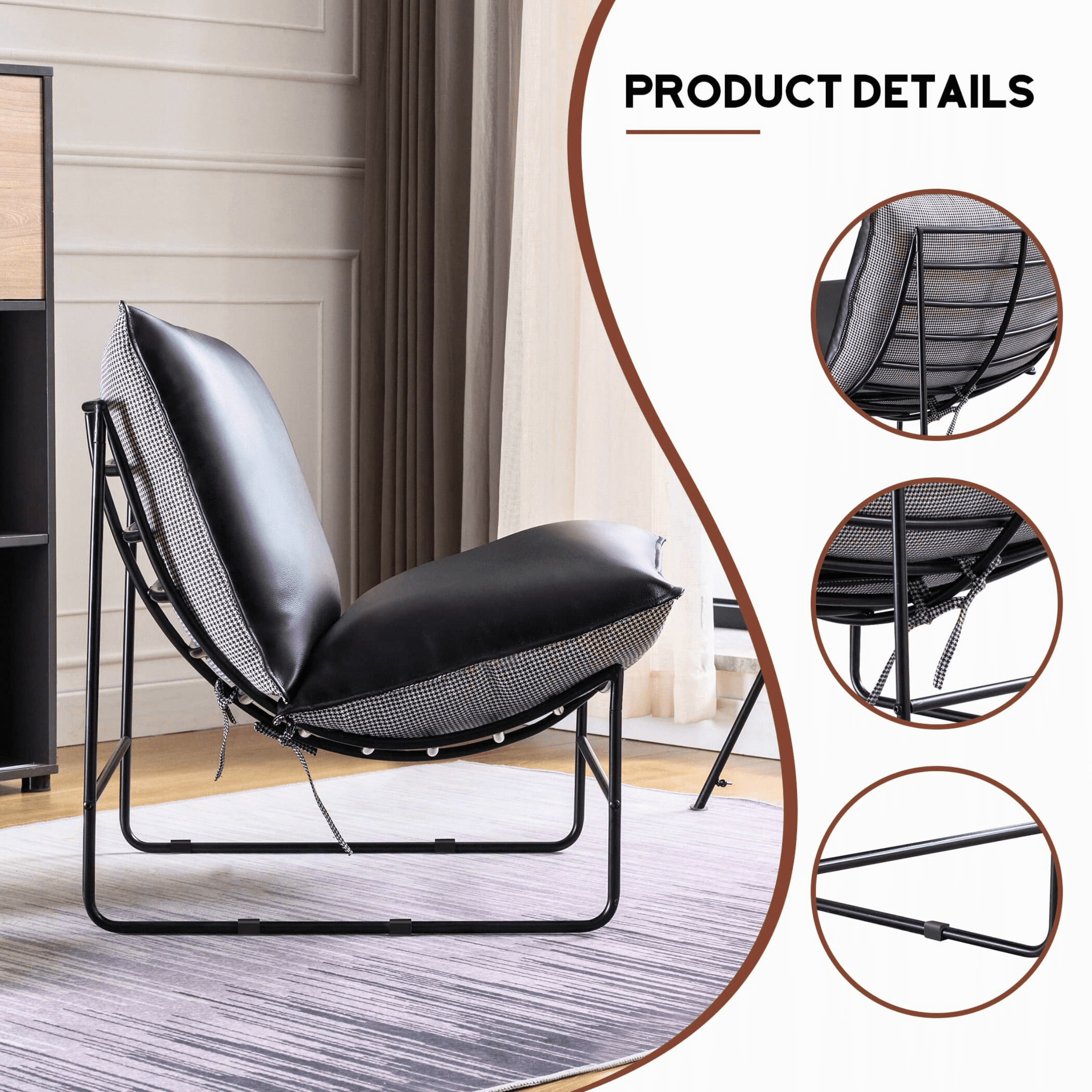 This accent chair boasts a retro concept with a pronounced, contemporary silhouette and unparalleled comfort. It is a stylish and comfortable addition to any living room, bedroom, family room, study, reading nook, or den, adding a touch of contemporary beauty to any living area.